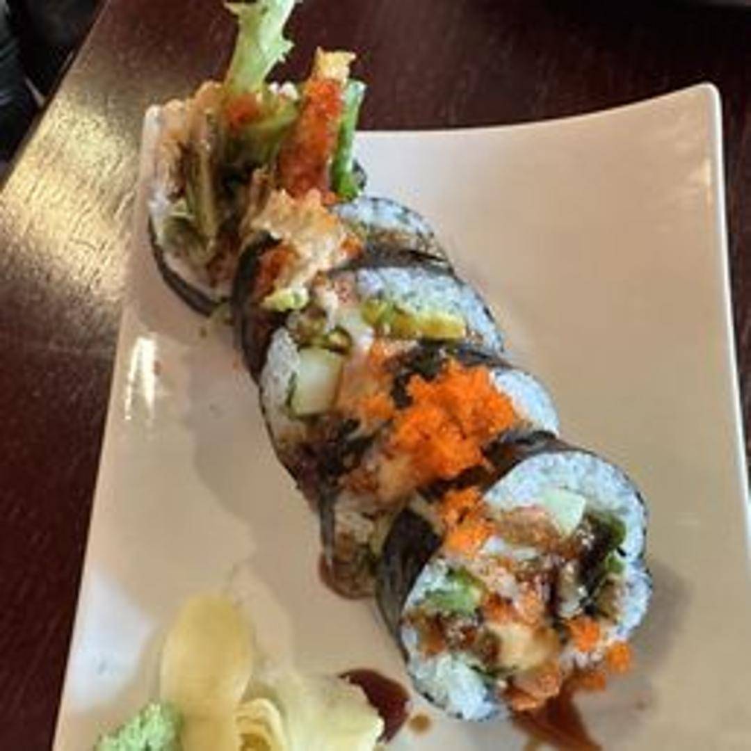 Crispy soft-shell crab, avocado, cucumber, and tobiko rolled together. Finished with a drizzle of eel sauce and spicy mayo.