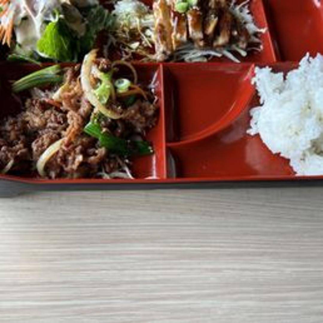 Thinly sliced marinated beef, stir-fried with onions, carrots, and scallions in a sweet and savory soy-garlic sauce. Served with a side of steamed rice.