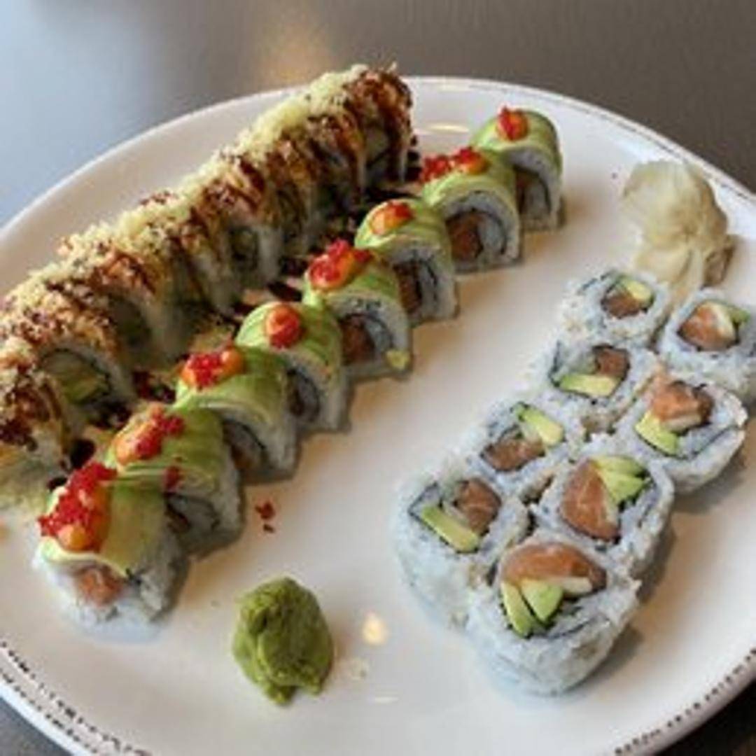 A champion's choice, the Derby Roll offers a winning blend of tempura shrimp and creamy avocado, artfully topped with fresh salmon, a hint of spicy mayo, and finished with delicate fish roe for a truly grand finish.