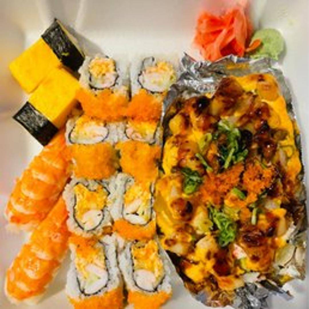 A sushi roll featuring fresh scallops, typically combined with other ingredients like avocado, cucumber, and sometimes tobiko (flying fish roe). The roll is often topped with a creamy sauce or additional scallops for enhanced flavor and texture. May include nori seaweed and sushi rice.
