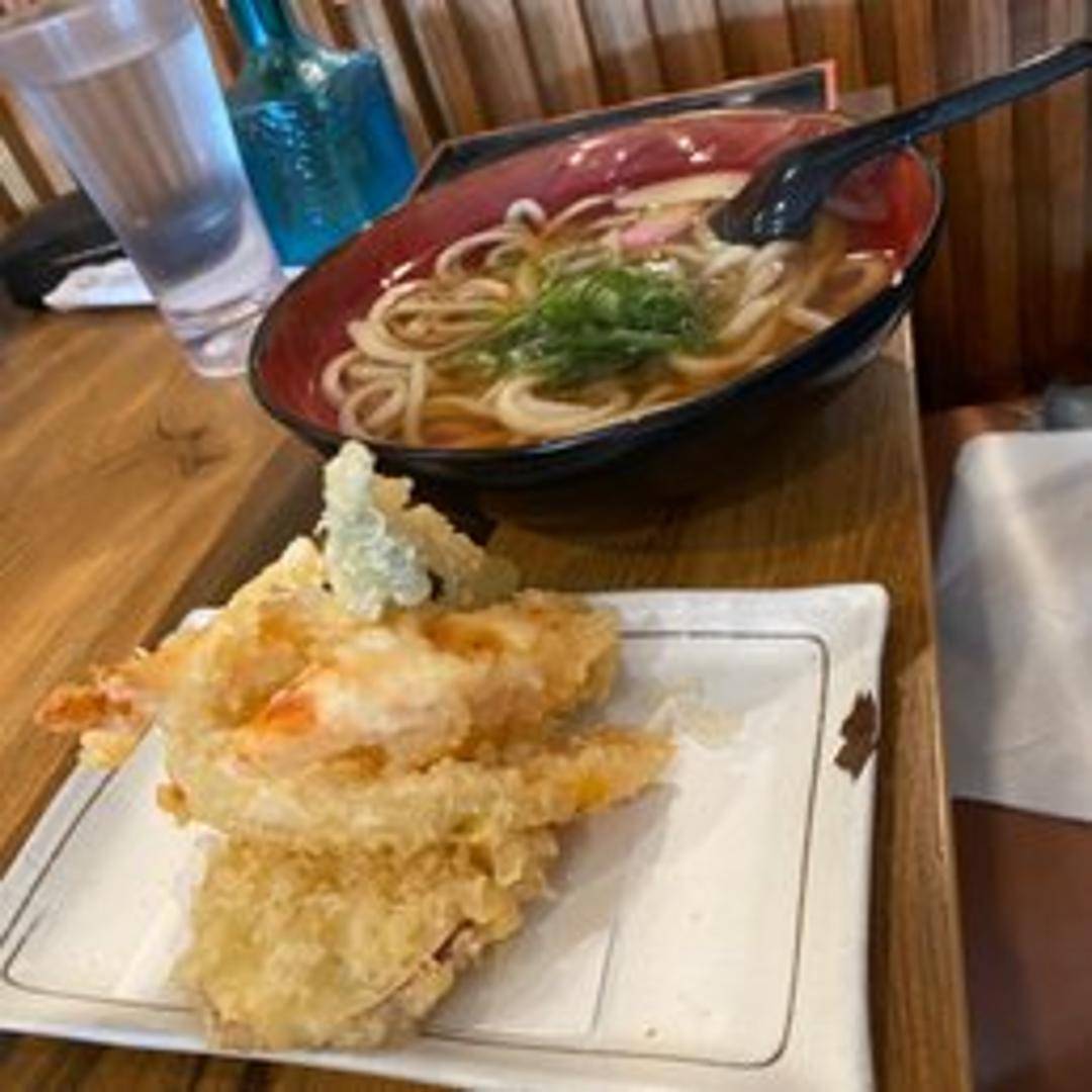 A comforting and hearty Japanese noodle soup featuring thick, chewy udon noodles submerged in a savory hot dashi broth. This satisfying dish is generously topped with a selection of crispy, golden-fried tempura, often including succulent shrimp and fresh vegetables.