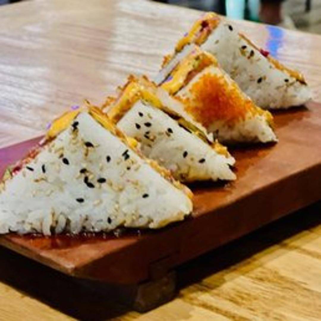 Layers of sushi rice, seaweed, and your choice of fillings, pressed together to form a unique sandwich. Select from tuna, salmon, or vegetable options. Served with a side of wasabi mayo.