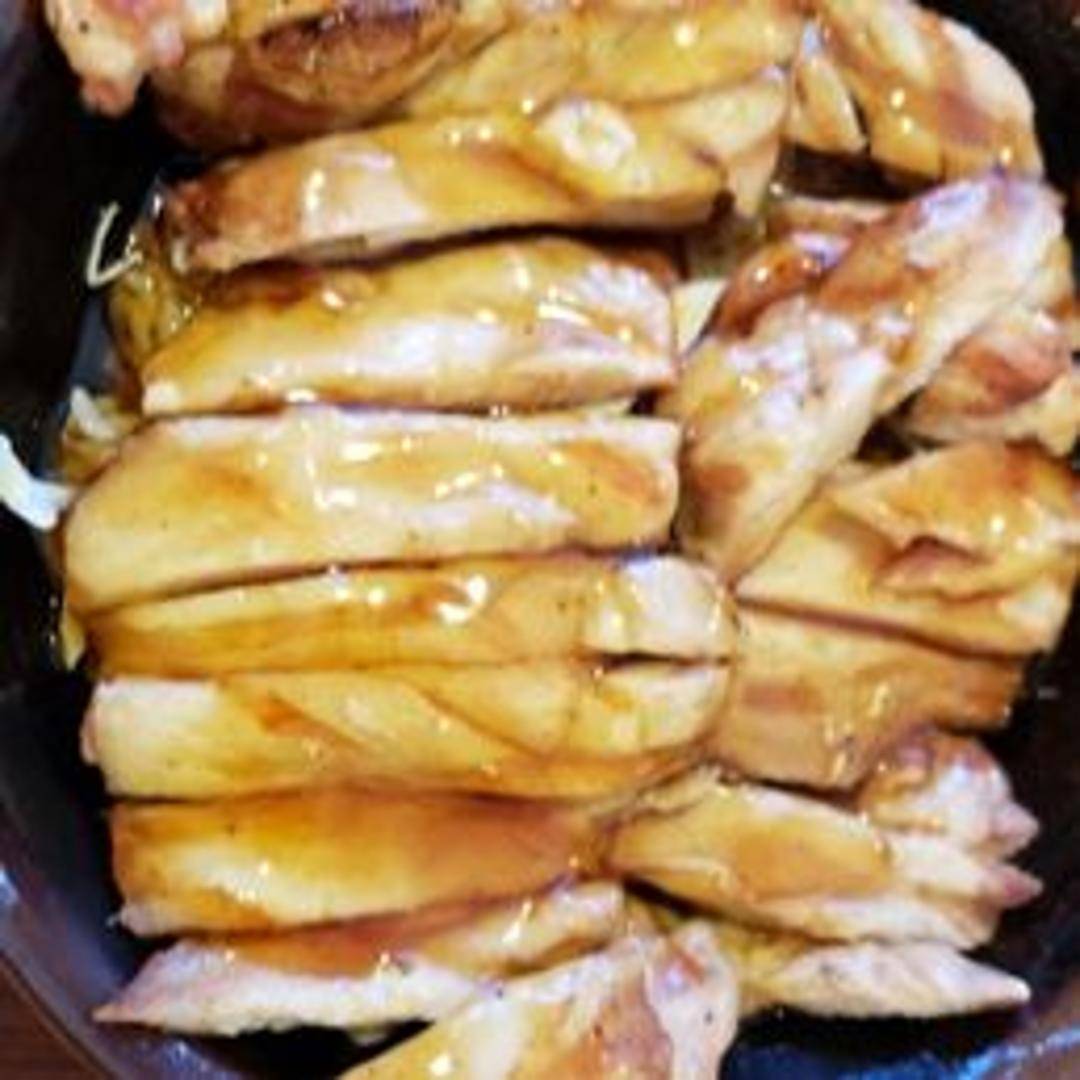 Tender pieces of grilled chicken glazed with a classic Japanese teriyaki sauce. The sauce is a rich blend of soy sauce, mirin, sake, and sugar, creating a sweet and savory flavor. Served with a side of steamed rice and often garnished with sesame seeds and scallions.