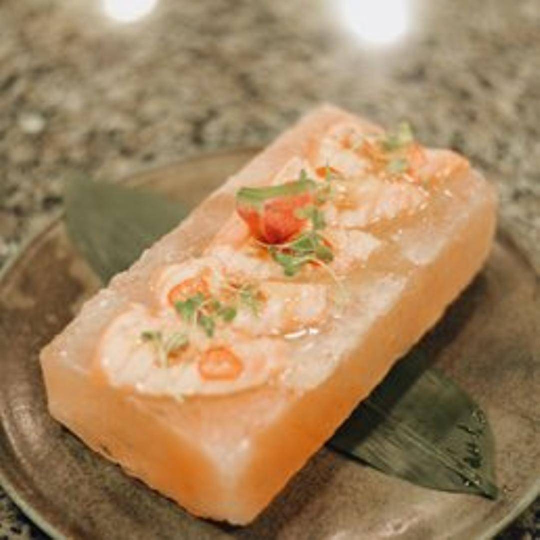 Savor the elegant simplicity of Sushi Mon's Rock Salt Salmon. This dish showcases meticulously sourced, fresh salmon, subtly enhanced with a delicate cure or seasoning of coarse rock salt. The salt amplifies the natural richness and buttery texture of the salmon, offering a clean, pure, and deeply savory flavor profile. Prepared to perfection, it highlights the quality of the fish with a minimalist approach that allows its inherent deliciousness to shine.