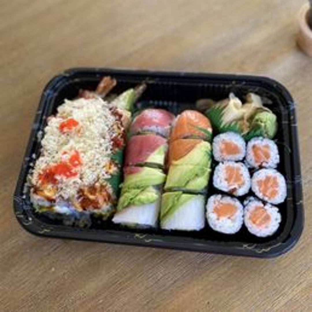 A large and filling sushi roll typically containing tempura shrimp, crab meat, avocado, and cucumber. Often topped with spicy mayonnaise and eel sauce, and sometimes garnished with masago or sesame seeds. A satisfying and decadent sushi experience.