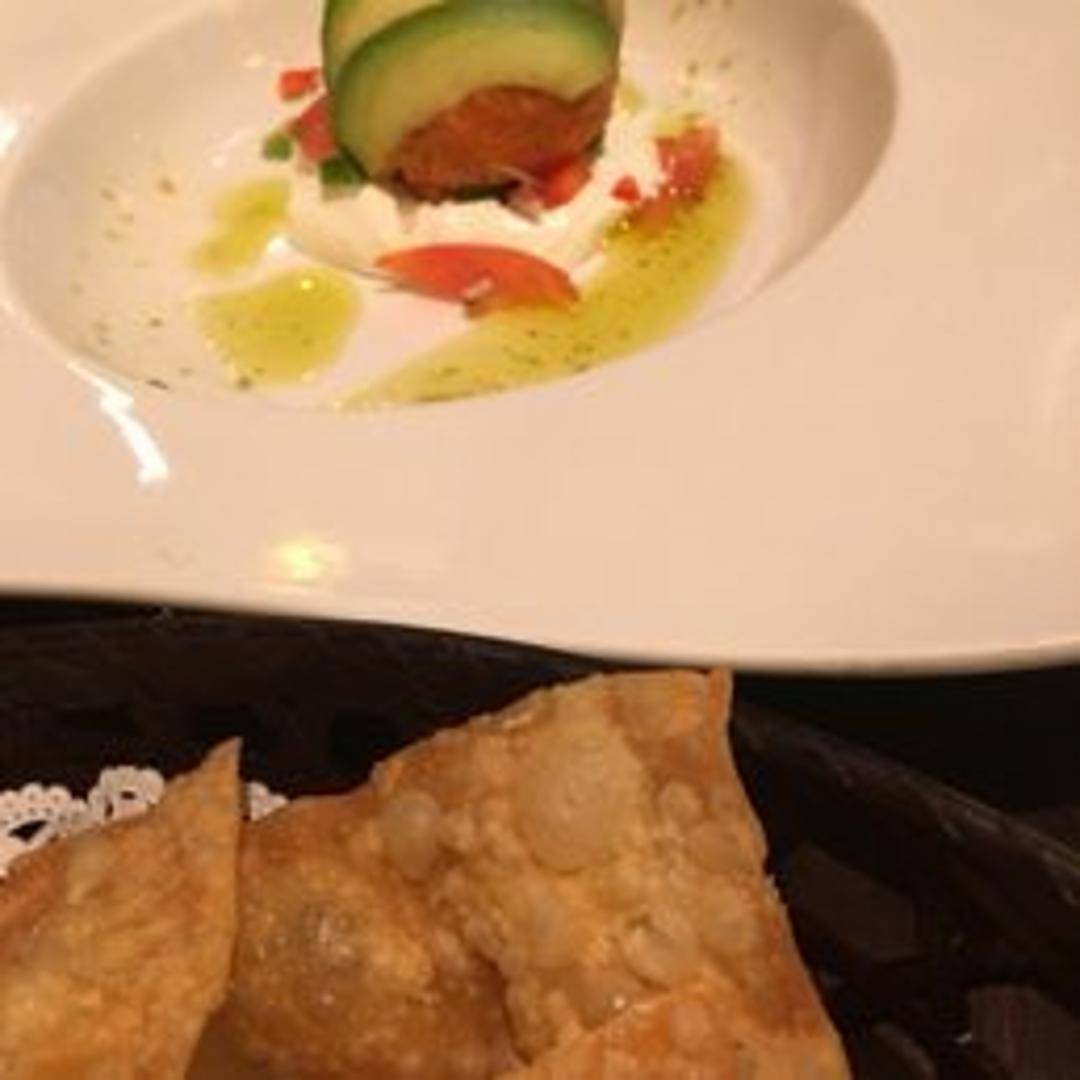 An adventurous and uniquely delicious appetizer, our 'Monkey Brain' consists of a halved avocado, lightly tempura-fried to a golden crisp. It's generously filled with a delectable mix of spicy tuna or imitation crab, drizzled with sweet unagi sauce and spicy mayo, then garnished with masago and scallions. Served alongside crispy nacho chips, perfect for scooping up every flavorful bite.