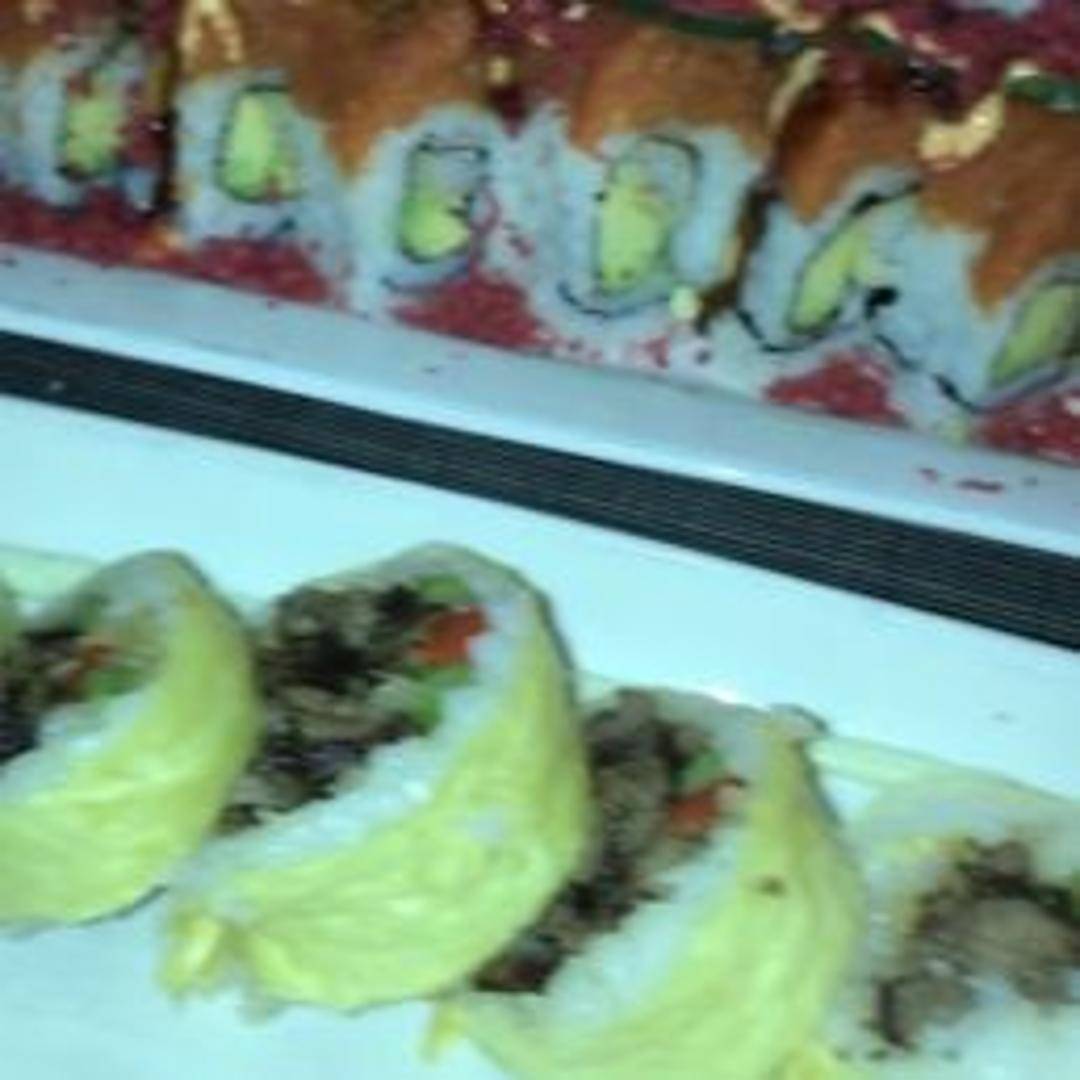 A dazzling signature roll that truly rocks! This masterpiece combines spicy tuna and crisp tempura flakes within, topped with seared salmon, a vibrant drizzle of sweet chili mayo, and a sprinkle of crunchy tobiko. An explosion of textures and bold flavors, designed to ignite your taste buds.