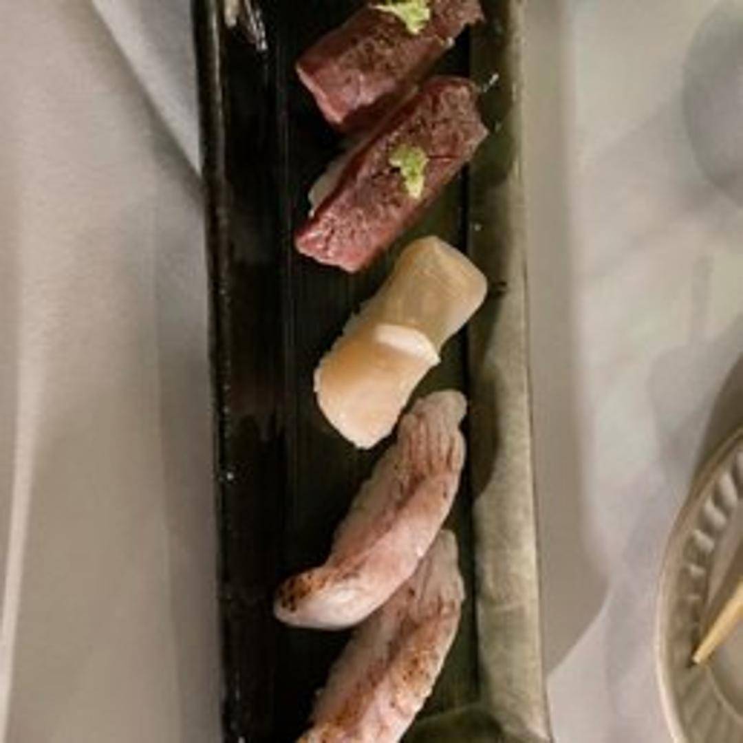 Delicate slices of premium Wagyu beef draped over perfectly seasoned sushi rice. Each piece offers a melt-in-your-mouth experience, highlighting the rich marbling and buttery flavor of the beef.