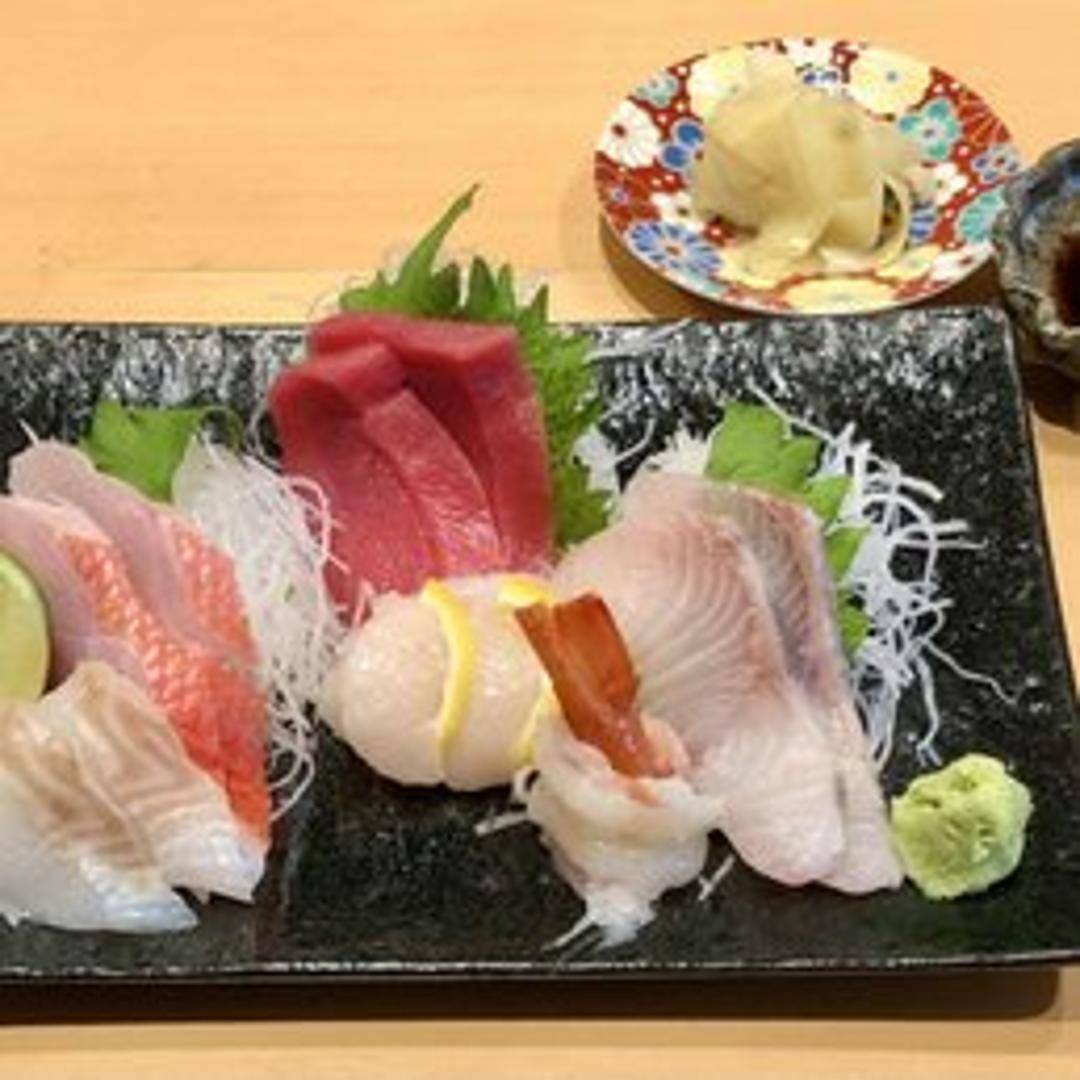 An assortment of expertly sliced, fresh, and pristine raw fish. A variety of seasonal selections, showcasing the natural textures and flavors of the ocean. Served with freshly grated wasabi and soy sauce.