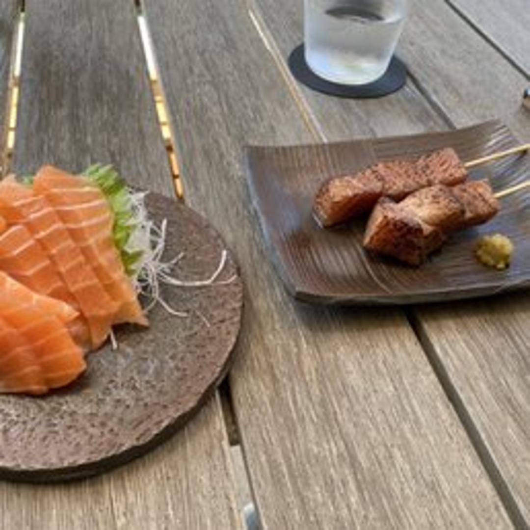 Grilled skewers featuring a selection of marinated meats, seafood, or vegetables, seasoned and cooked to perfection for a flavorful and satisfying appetizer or side dish.