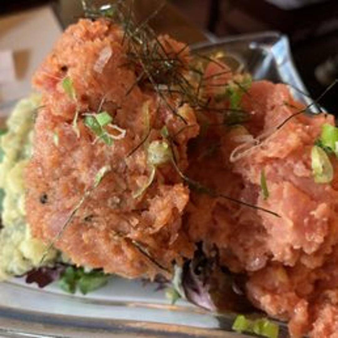 A vibrant and refreshing salad featuring fresh, finely diced tuna tossed in a creamy, zesty, and spicy dressing. This popular appetizer often includes a medley of crisp vegetables such as cucumber or avocado, and may be garnished with masago or scallions, offering a delightful balance of flavors and textures.