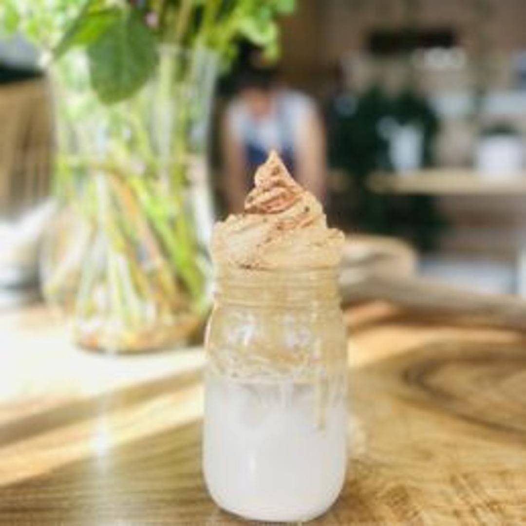 An indulgent and creamy dessert bowl inspired by the popular Dalgona coffee trend. Features a base of creamy coconut yogurt topped with a sweet and fluffy Dalgona coffee foam, crunchy cocoa nibs, and a sprinkle of cinnamon. A perfect treat to satisfy your sweet tooth with a hint of coffee flavor.