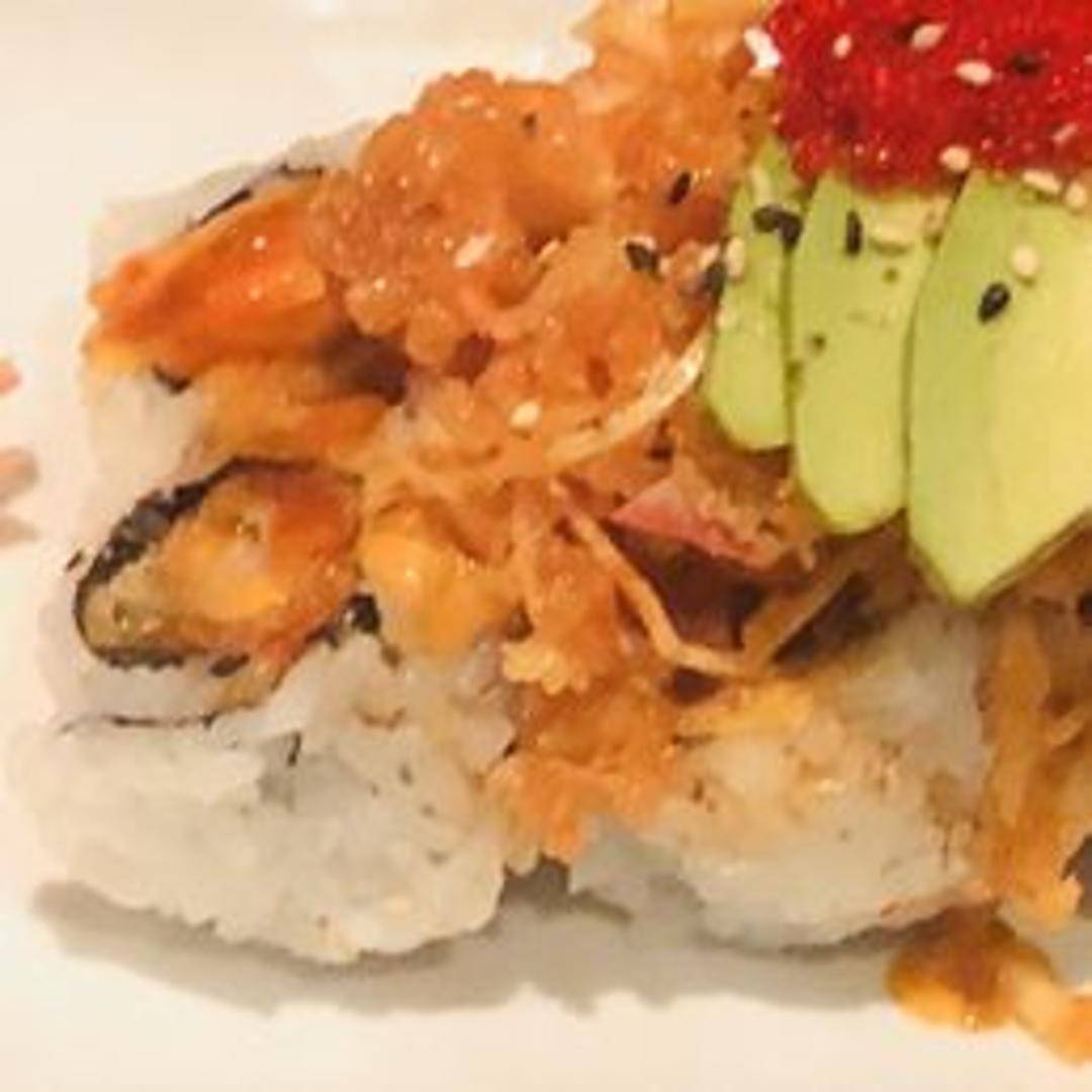 A savory and warm sushi experience, featuring a medley of baked seafood, such as tender scallops or succulent shrimp, combined in a creamy, often spicy, sauce, and rolled with rice and nori for a rich and comforting flavor.