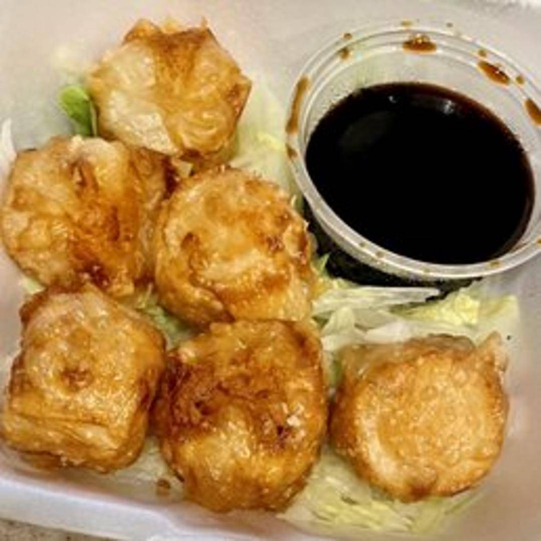 Steamed dumplings filled with succulent shrimp and flavorful seasonings, typically served in a bamboo steamer basket. A delicate and savory appetizer or side dish.