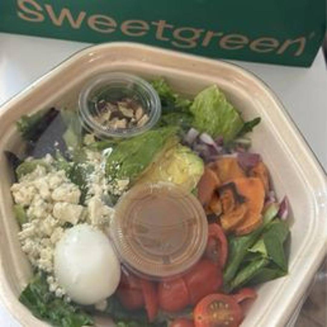 A fresh take on a classic Cobb salad with romaine lettuce, roasted chicken, hard-boiled egg, tomatoes, avocado, crispy bacon, blue cheese, and a green goddess ranch dressing. A filling and flavorful salad with a variety of wholesome ingredients.