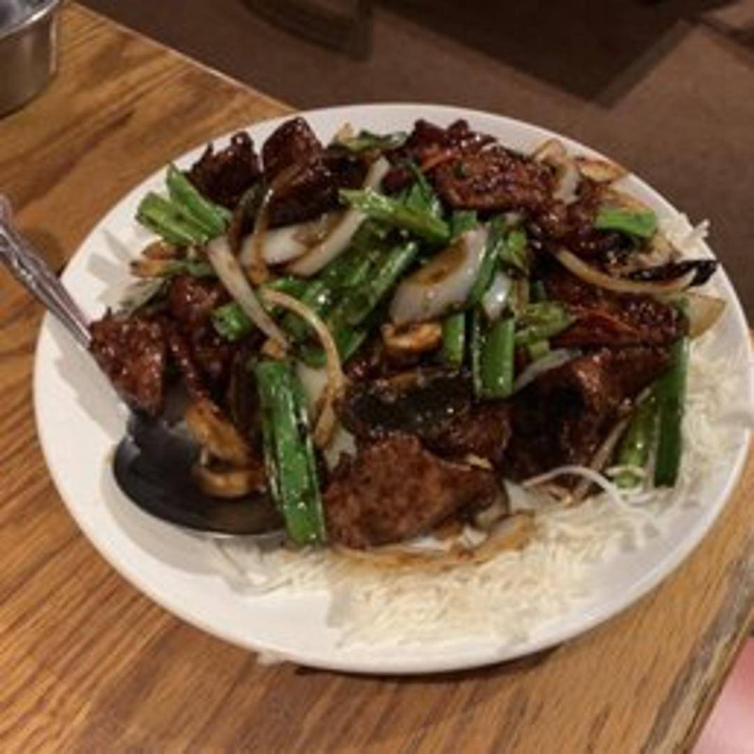 Sliced beef stir-fried with scallions and onions in a sweet and savory Mongolian sauce. Served with steamed rice.