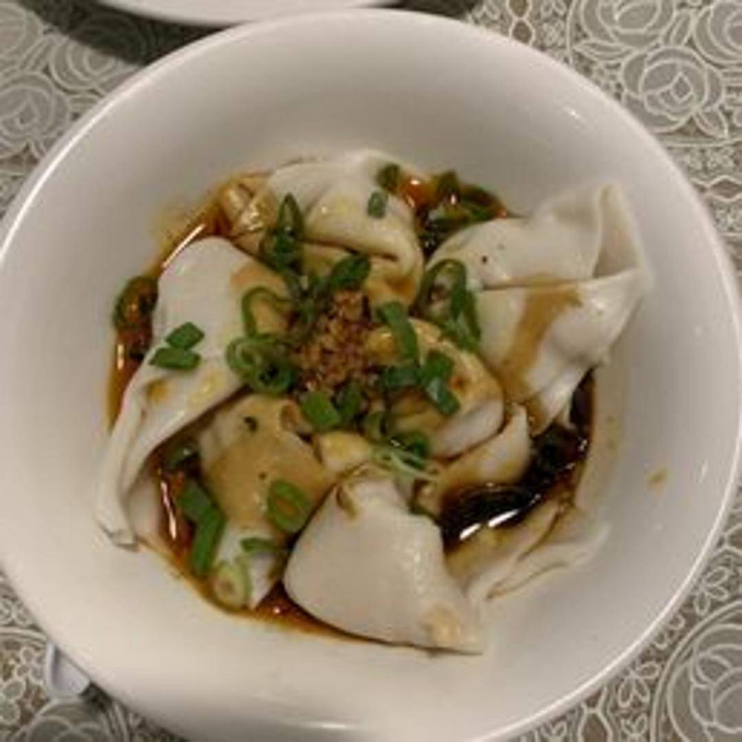 Delicate wontons generously filled with seasoned pork, boiled until tender, and then submerged in Szechuan Gourmet's signature chili oil sauce, enriched with aromatic spices, roasted peanuts, and often garnished with fresh scallions for a perfect blend of savory, spicy, and nutty flavors.