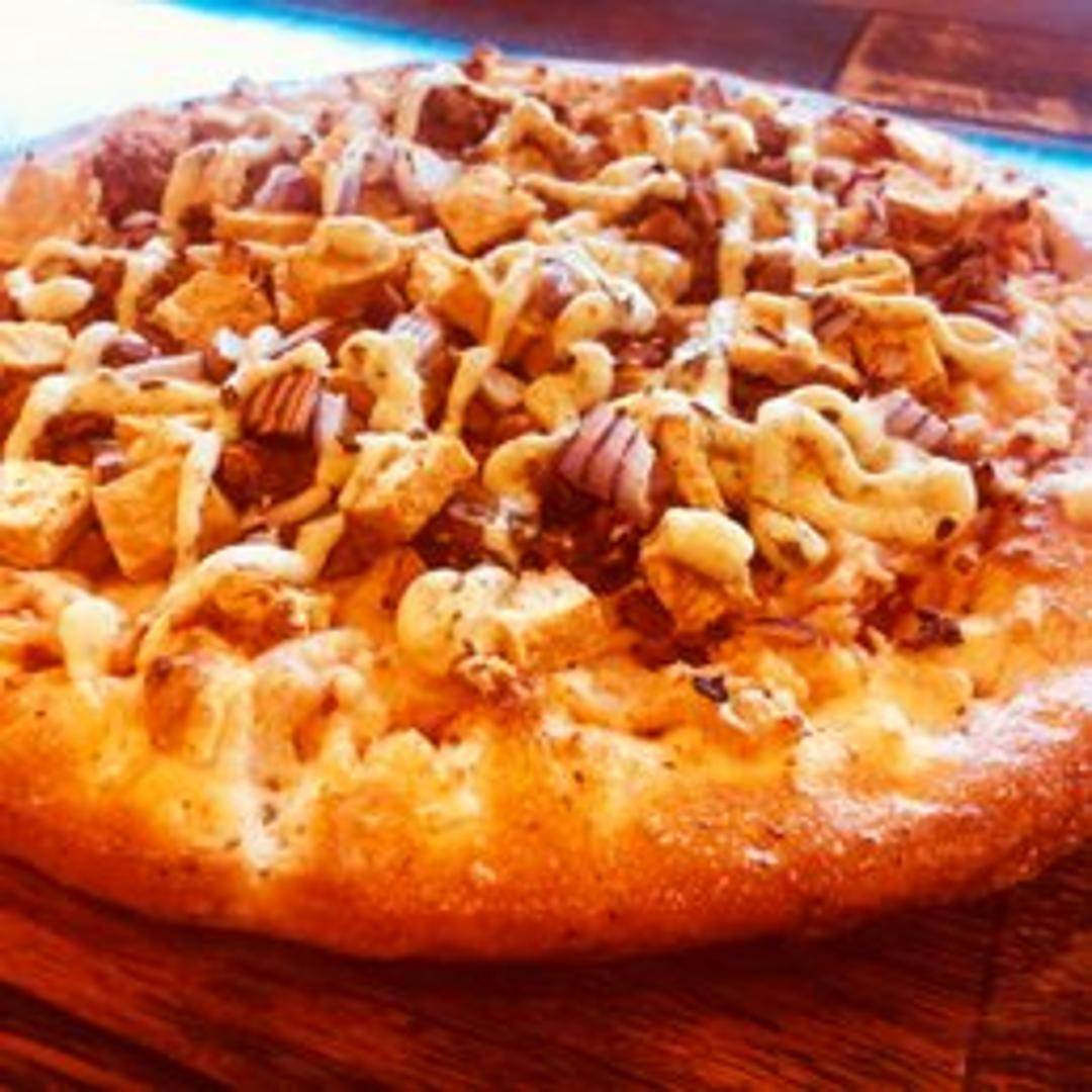 A refreshing and unique pizza with a blend of seafood flavors, featuring shrimp, scallops, and calamari on a creamy garlic sauce base, topped with mozzarella and a sprinkle of fresh herbs.