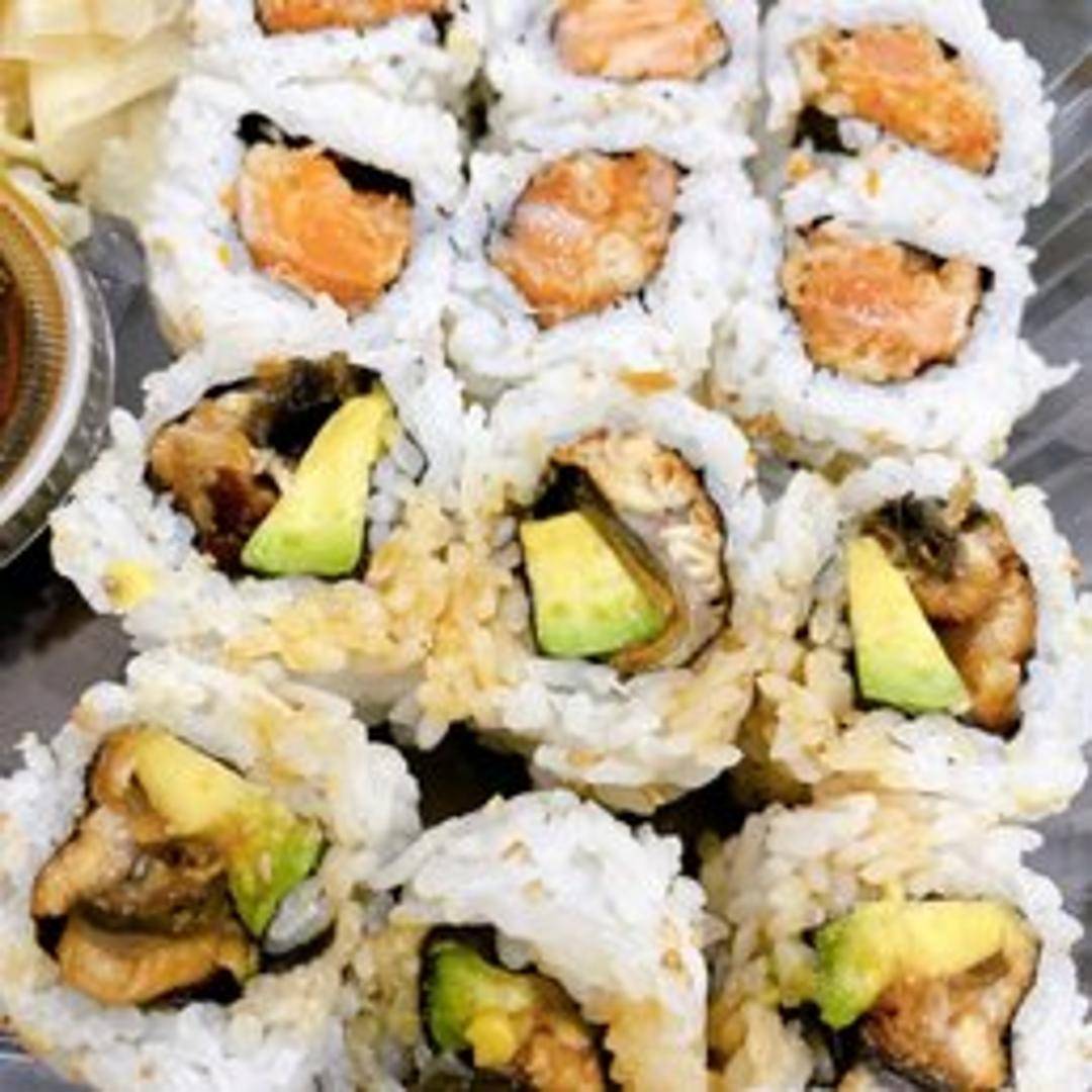 A vibrant and flavorful sushi roll featuring fresh salmon, finely minced and tossed with a creamy, spicy sauce, often with a hint of chili. Rolled with sushi rice and nori, it delivers a satisfying kick and rich, buttery notes of salmon, sometimes complemented by crisp cucumber or avocado.