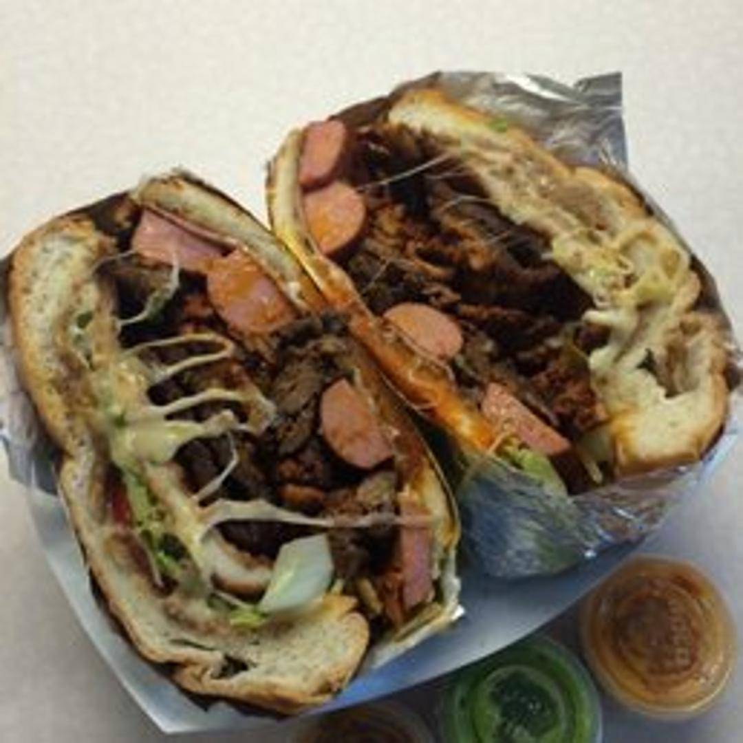 The signature Torta Bamba is a substantial and satisfying Mexican sandwich, generously built on a toasted telera roll. It typically features a delicious combination of savory meats, such as carne asada or al pastor, layered with creamy refried beans, fresh avocado, melted cheese, crisp lettuce, tomato, onions, and a touch of spicy mayo or jalapeños for an elevated and hearty meal.