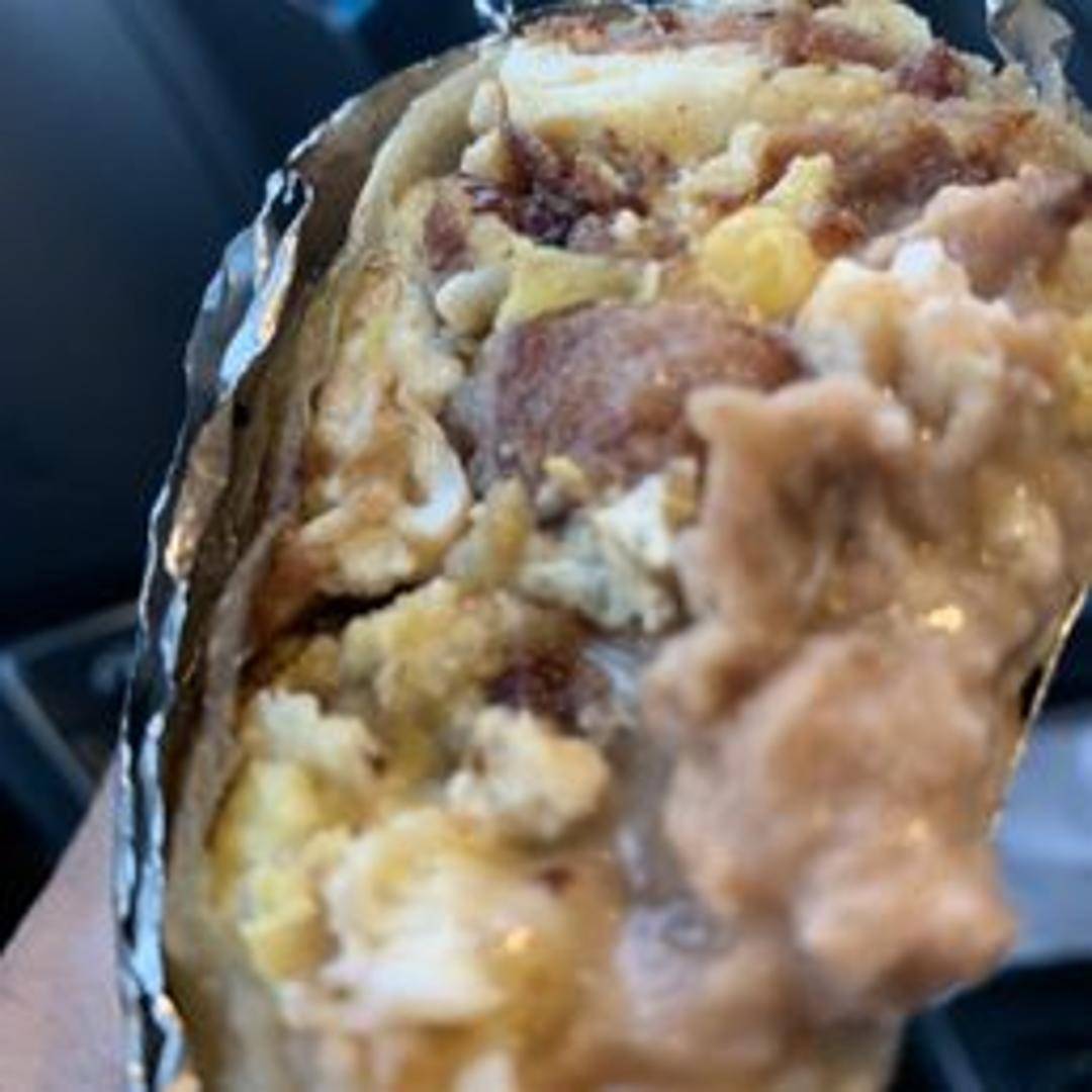A hearty burrito filled with scrambled eggs, your choice of meat (such as bacon, sausage, or chorizo), potatoes, cheese, and salsa, all wrapped in a warm flour tortilla. A filling way to start your day.