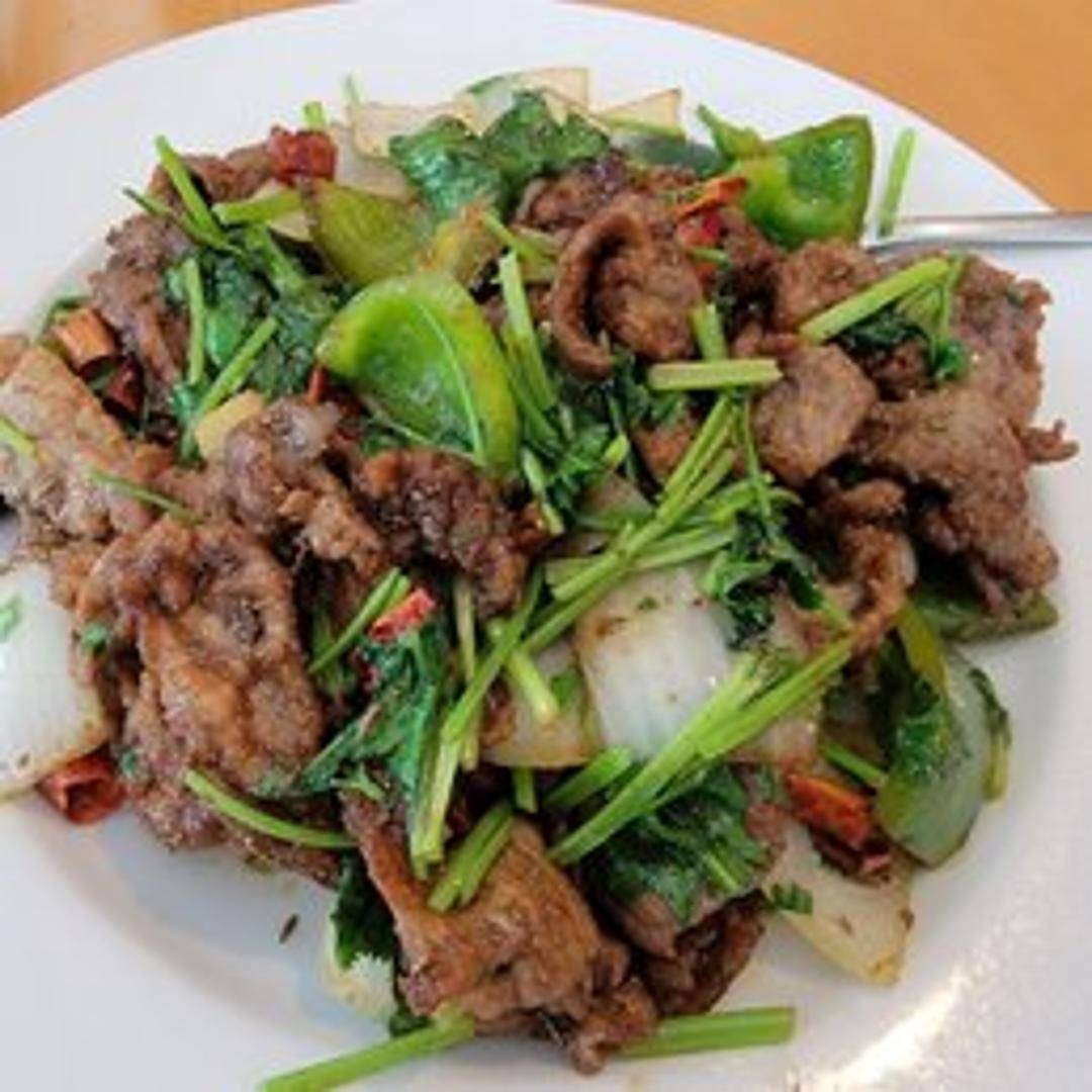 Savor the distinctive and aromatic Cumin Lamb, a vibrant dish featuring tender slices of lamb stir-fried to perfection. Infused with the warm, earthy notes of cumin seeds, this dish is often complemented by a subtle hint of chili for a balanced kick. Bell peppers and onions might be incorporated, adding freshness and texture to the savory, spice-forward profile that is characteristic of Northwestern Chinese cuisine.