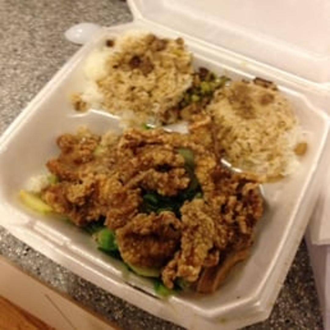 A crispy, golden-brown pork chop, marinated in traditional Taiwanese spices and seasonings, then deep-fried to perfection. Served with rice and a side of pickled vegetables.