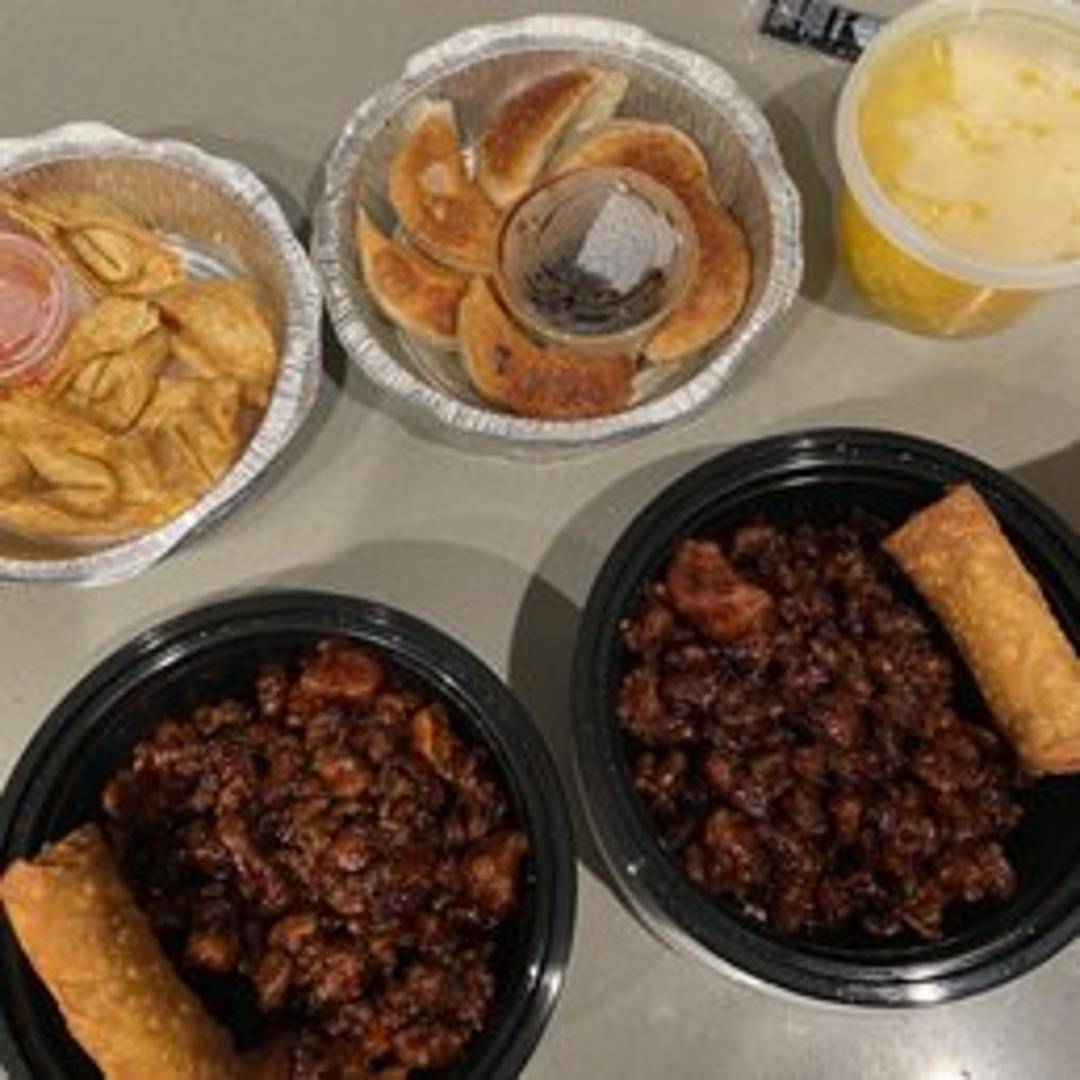 Savor our Pan Fried Dumplings, a classic appetizer featuring tender pork and vegetable filling encased in a delicate wrapper, expertly pan-fried to achieve a crispy golden-brown bottom and a perfectly steamed top. Served with a side of savory dipping sauce, these dumplings offer a delightful contrast in textures and a burst of authentic flavor, making them an ideal start to your meal.