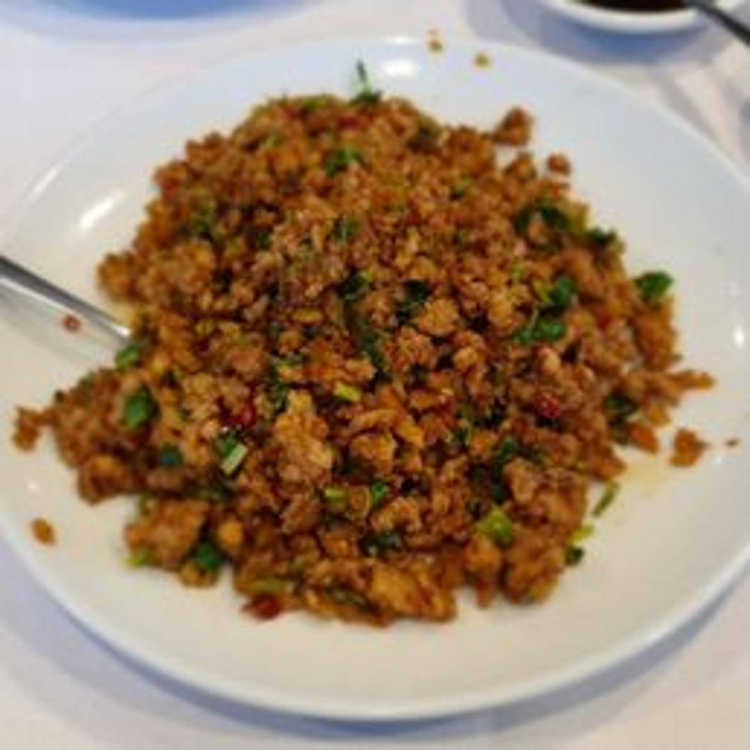 Ground chicken stir-fried with chili peppers, garlic, and a blend of spicy sauces. A flavorful and fiery dish served over rice.