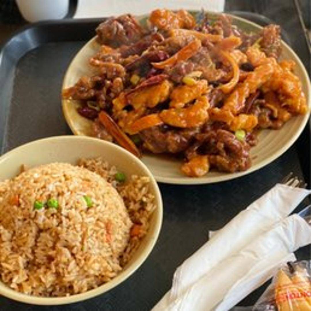 Enjoy crispy, battered chicken pieces coated in a delightful sweet and sour sauce infused with the aromatic zest of fresh and dried orange peels. This dish offers a perfect balance of citrusy tang and savory notes, creating a uniquely refreshing flavor profile.