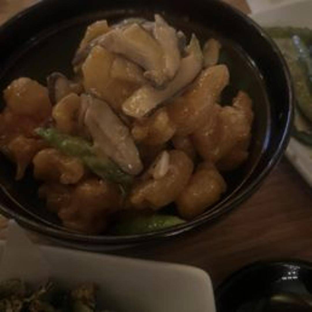 Bite-sized pieces of shrimp lightly coated in a crispy tempura batter. Served hot and fresh, perfect for snacking or as an appetizer.