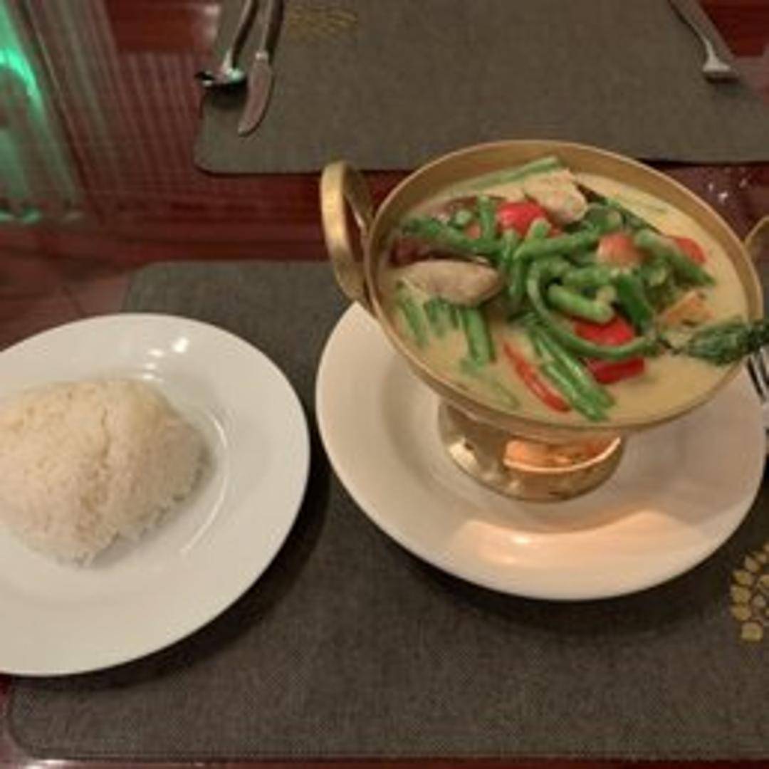 A fragrant and slightly spicy curry made with coconut milk, green curry paste, bamboo shoots, bell peppers, eggplant, and your choice of protein. Served with steamed jasmine rice.