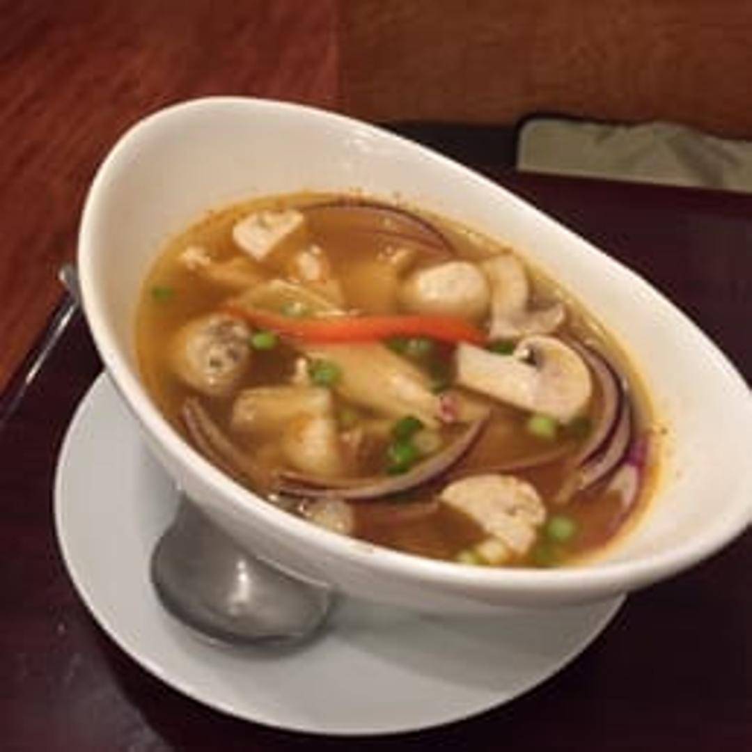 A hot and sour soup with fragrant lemongrass, galangal, kaffir lime leaves, mushrooms, tomatoes, onions, and your choice of protein (chicken, shrimp, or tofu). Seasoned with fish sauce and chili for a balanced and flavorful broth.