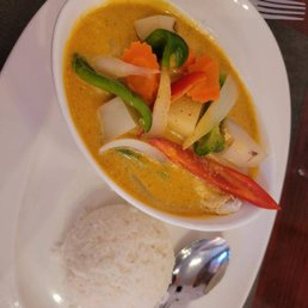 A mild and creamy curry made with coconut milk, yellow curry powder, potatoes, carrots, onions, and your choice of protein. Served with steamed jasmine rice.