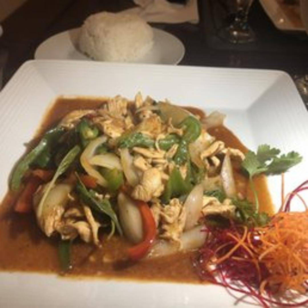 Your choice of protein stir-fried with fresh basil, onions, bell peppers, and a generous amount of Thai chili peppers in a spicy and flavorful sauce. Served with steamed rice.