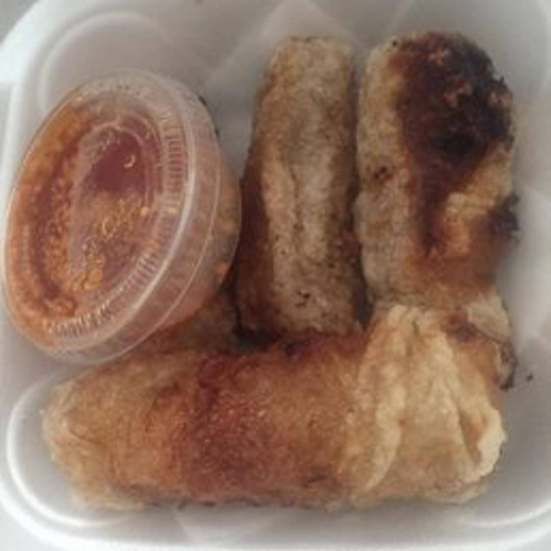 Crispy fried spring rolls filled with vegetables and glass noodles. Served with a sweet chili dipping sauce.