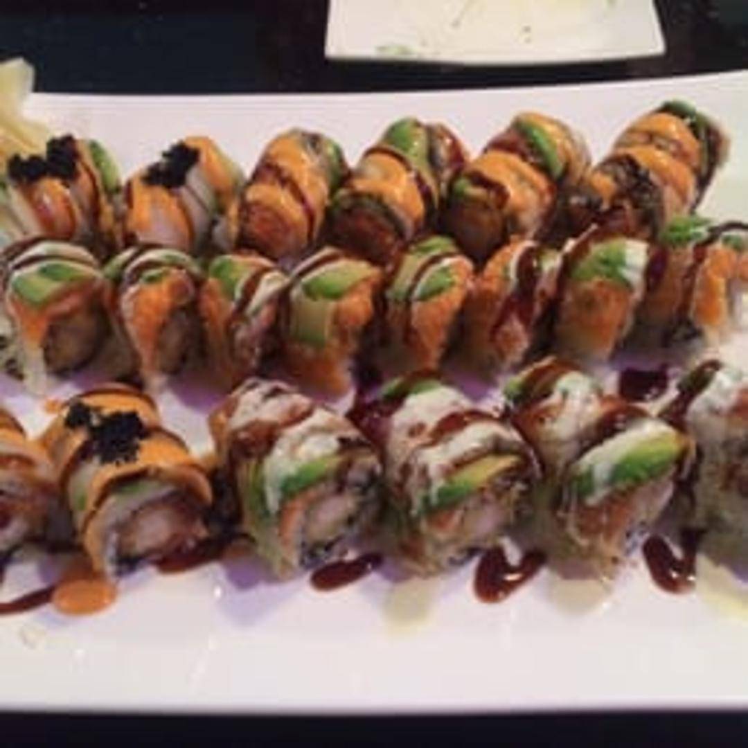 Tuna, salmon, yellowtail, avocado, and cucumber wrapped in soy paper with a special sauce.