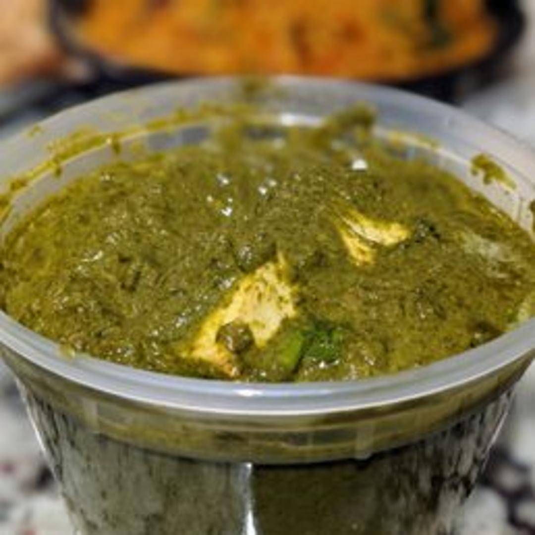 A classic North Indian vegetarian dish featuring creamy spinach (palak) and cubes of fresh Indian cheese (paneer). The spinach is pureed and cooked with aromatic spices, ginger, garlic, and onions, creating a rich and flavorful gravy. The paneer is gently simmered in the spinach, absorbing the flavors and adding a delightful textural contrast.