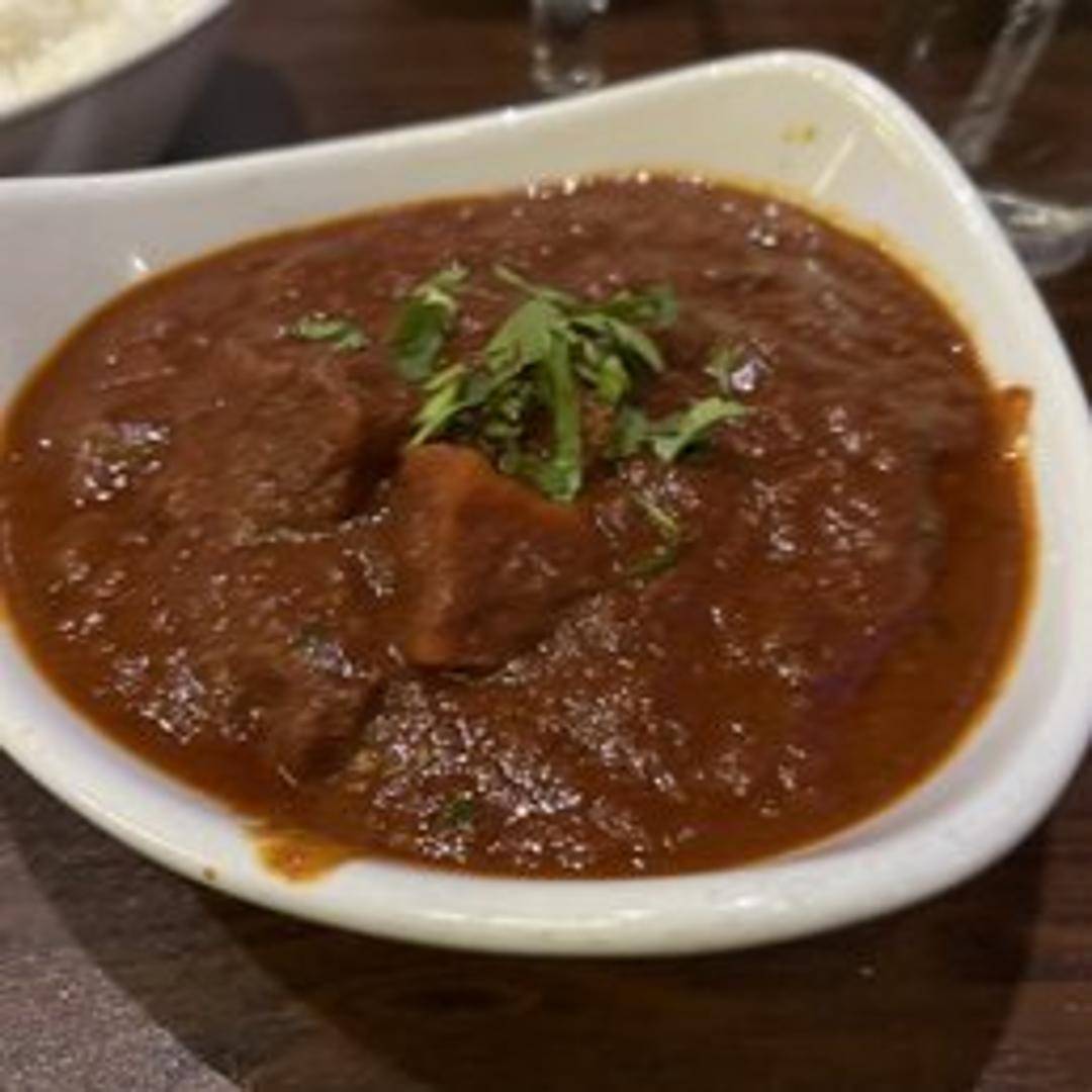 A fiery and flavorful Goan curry made with tender goat meat, potatoes, and a blend of aromatic spices including chili peppers, vinegar, ginger, garlic, and cumin. Slow-cooked to perfection for a rich and intense taste experience.