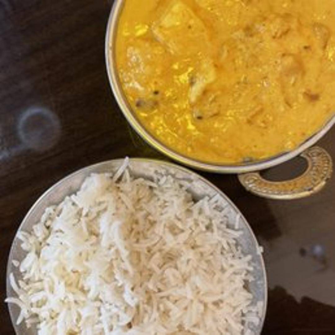 A mild and creamy curry made with yogurt, nuts (almonds or cashews), and spices. Often features chicken or vegetables in a gently spiced sauce.