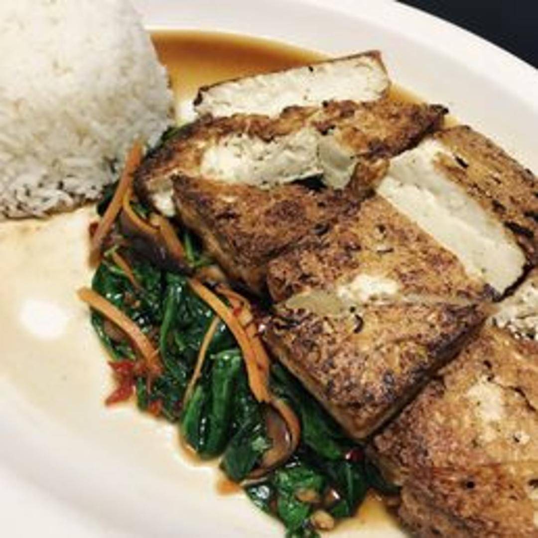 Discover the exquisite flavors of Tangerine Cafe's Lemongrass Tofu, a highly aromatic and savory vegetarian delight. Firm tofu is meticulously marinated in a vibrant blend of fresh lemongrass, garlic, chili, and a savory sauce, then pan-fried or stir-fried to a golden crisp. Served with steamed rice and fresh vegetables, this dish offers a zesty, fragrant, and satisfying experience that is both light and rich in flavor.