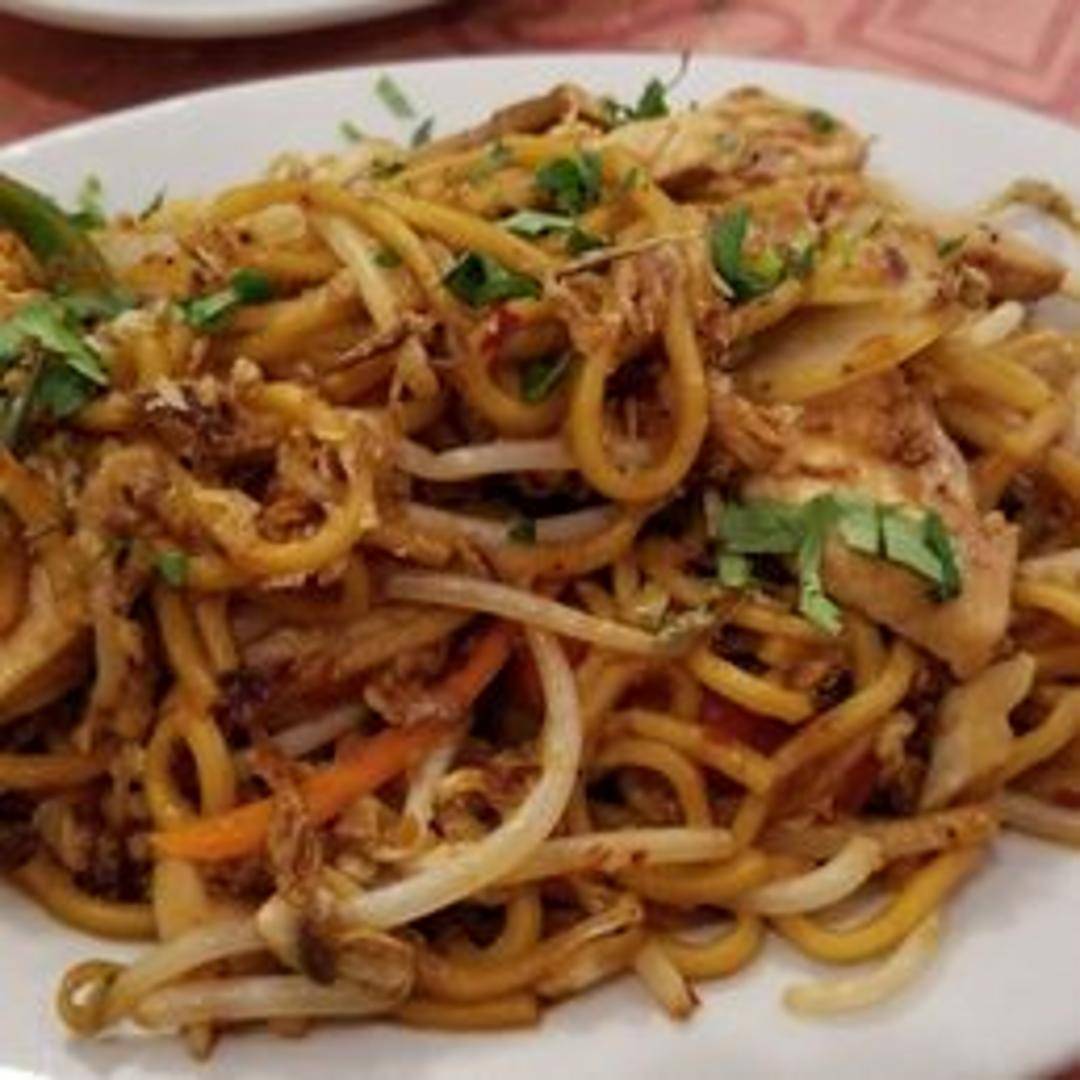 A vibrant and popular Malaysian street food classic. Wok-fried egg noodles tossed with tender chicken, plump shrimp, crisp fresh vegetables, and a savory-sweet chili sauce, delivering a rich and complex flavor profile with a satisfying texture.