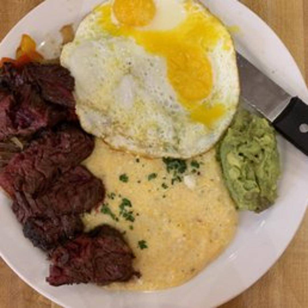 A classic, protein-packed breakfast. Enjoy a perfectly cooked steak (tell us how you like it!) served alongside your choice of eggs (scrambled, fried, or poached) and a side of breakfast potatoes or toast. A substantial and satisfying meal to fuel your day.