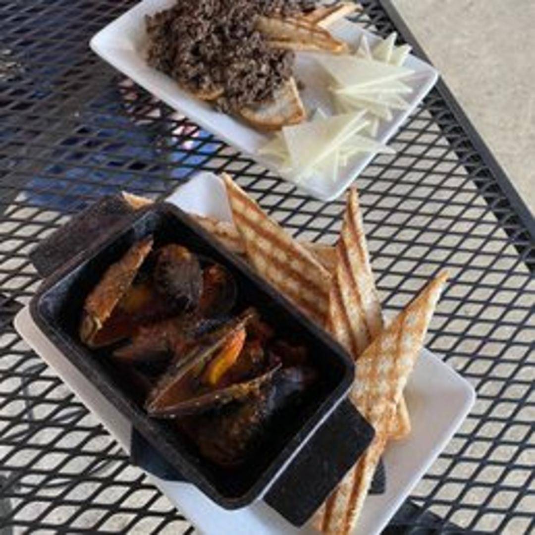 Toasted slices of artisan bread topped with a medley of sautéed mushrooms, garlic, herbs, and a drizzle of olive oil. A rich and earthy vegetarian option.