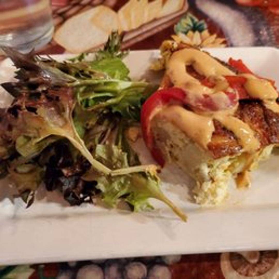 Traditional Spanish omelet made with potatoes, onions, and eggs, cooked to a slightly runny center.