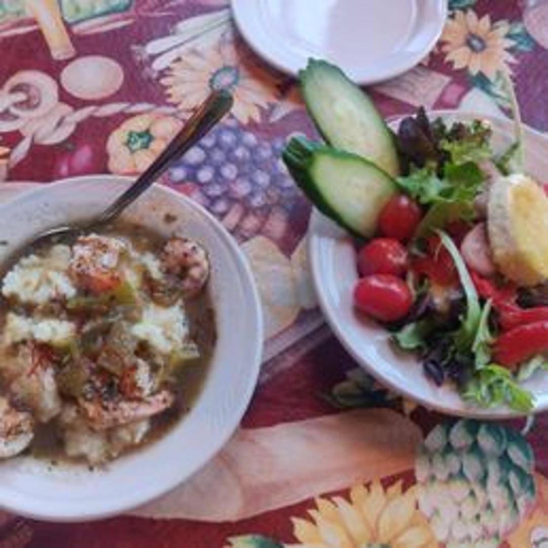 A refreshing salad featuring creamy goat cheese, mixed greens, seasonal vegetables, and a light vinaigrette dressing.