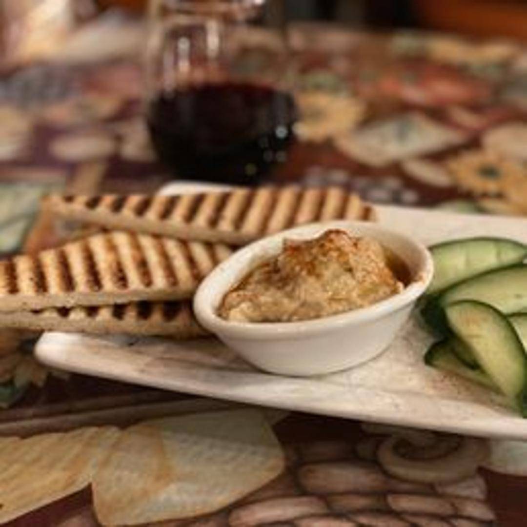 Creamy white bean hummus, served with crudités and grilled pita bread.
