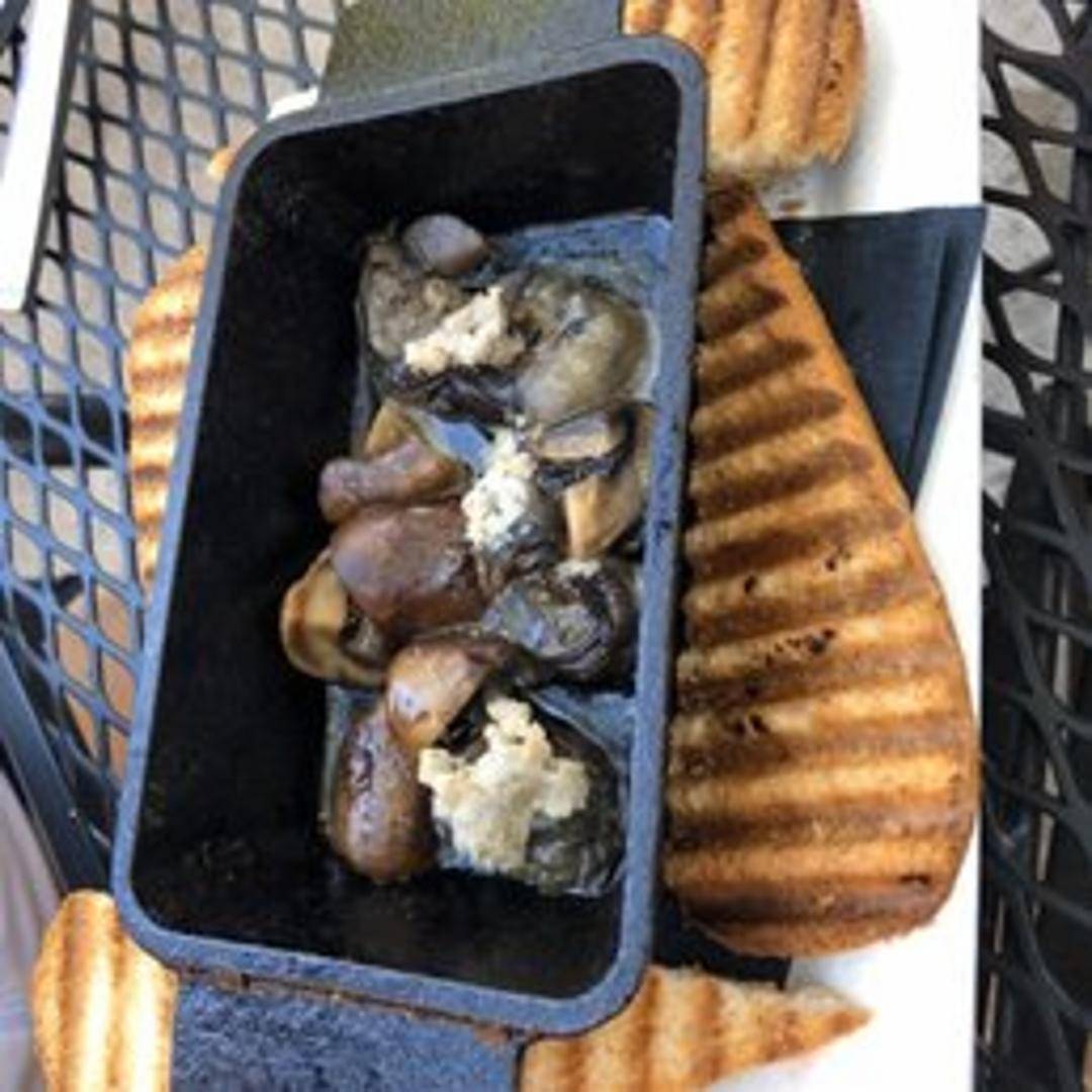 Snails baked in garlic-herb butter, served with crusty bread for dipping.