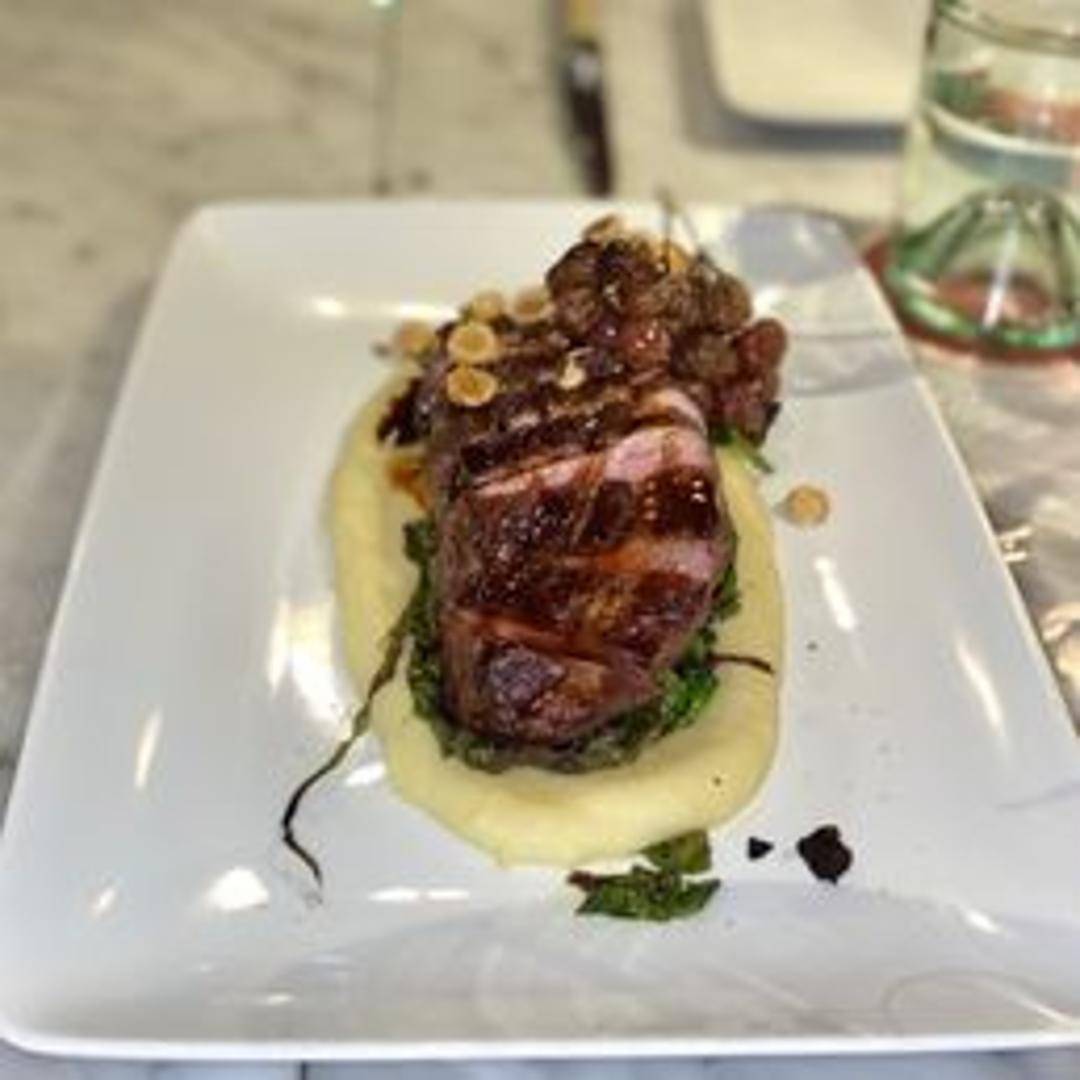 A perfectly seared duck breast, showcasing a beautifully rendered, crispy skin and succulent, rosy-pink meat. Prepared to highlight its rich, distinctive flavor, this dish often features a complementary sauce or accompaniment that balances its inherent richness, creating a harmonious and sophisticated culinary experience.