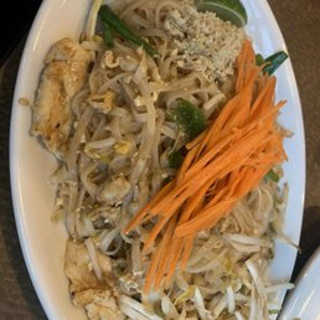 Thailand's most famous noodle dish! Stir-fried rice noodles with egg, bean sprouts, green onions, and peanuts in a tangy tamarind sauce. Choose your protein: chicken, shrimp, tofu, or vegetables.